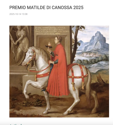 Premio, di 1500 €, per la migliore tesi di laurea avente per argomento centrale la figura storica di MATILDE DI CANOSSA, indipendentemente dal Corso di Studi di appartenenza.
